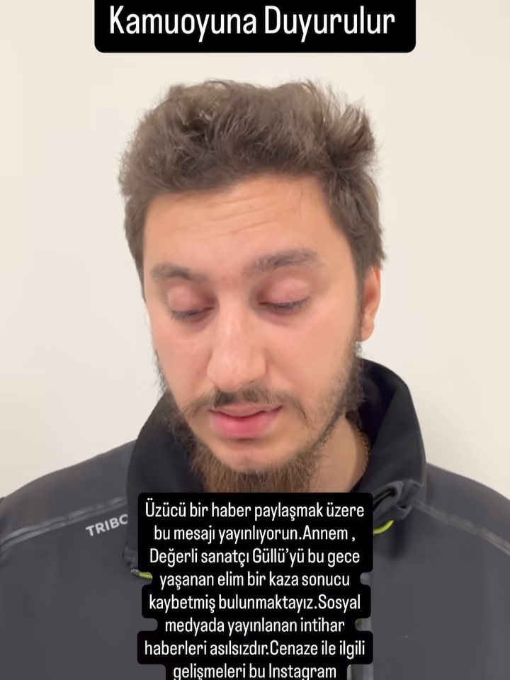 Oğlu yaptığı paylaşımda, “Üzücü bir haber paylaşmak üzere bu mesajı yayınlıyorum. Annem, değerli sanatçı Güllü’yü bu gece yaşanan elim bir kaza sonucu kaybetmiş bulunmaktayız. Sosyal medyada yayınlanan intihar haberleri asılsızdır. Cenaze ile ilgili gelişmeleri bu Instagram sayfasından paylaşacağım. Başımız sağ olsun.” ifadelerine yer verdi.