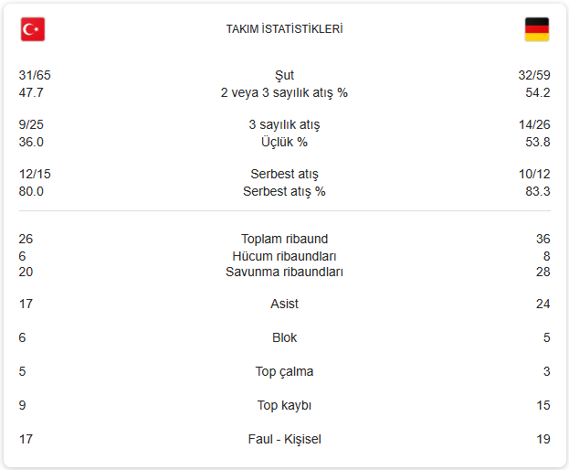 Türkiye 83 – 88 Almanya